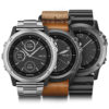 fēnix 3 Sapphire is available in 3 different styles: rose gold-tone with white band, silver with leather band and the classic metal. Each watch features a protective stainless steel bezel and buttons and reinforced housing for extra durability. A sunlight-visible high-resolution color Chroma display with LED backlight lets you access your data in any light. fēnix 3 is water-rated to 100 meters and has a battery life of up to 50 hours in UltraTrac mode, 20 hours in GPS mode and up to 3 weeks in smart-watch mode (all depending on settings)